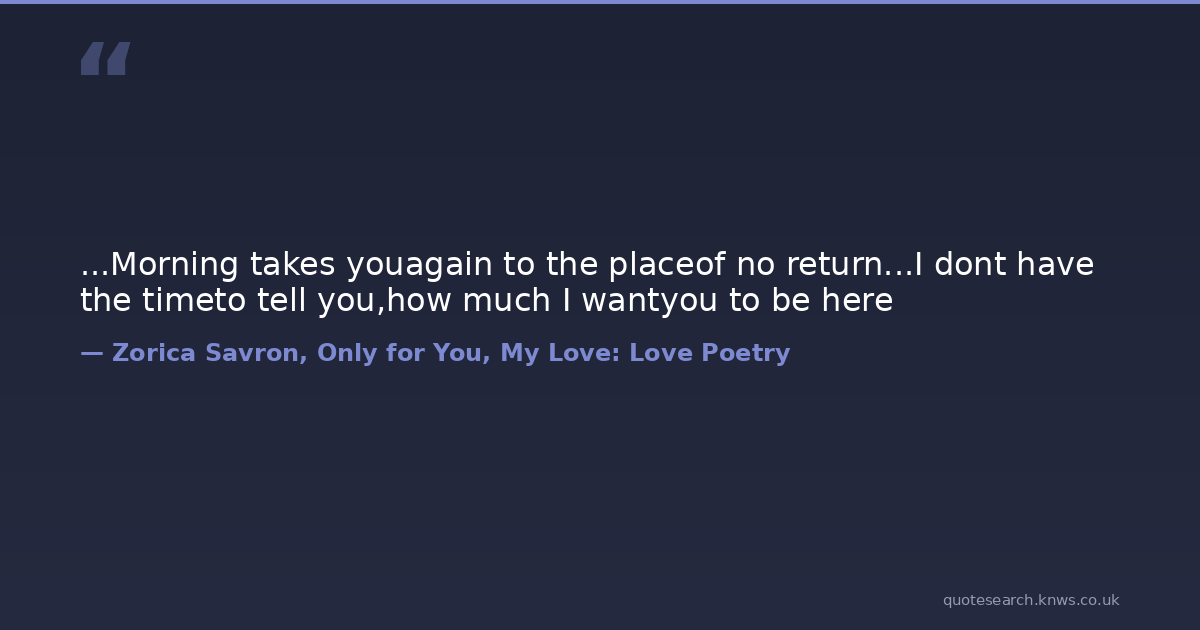 ...Morning takes youagain to the placeof no return...I dont have the timeto tell you,how much I wantyou to be here