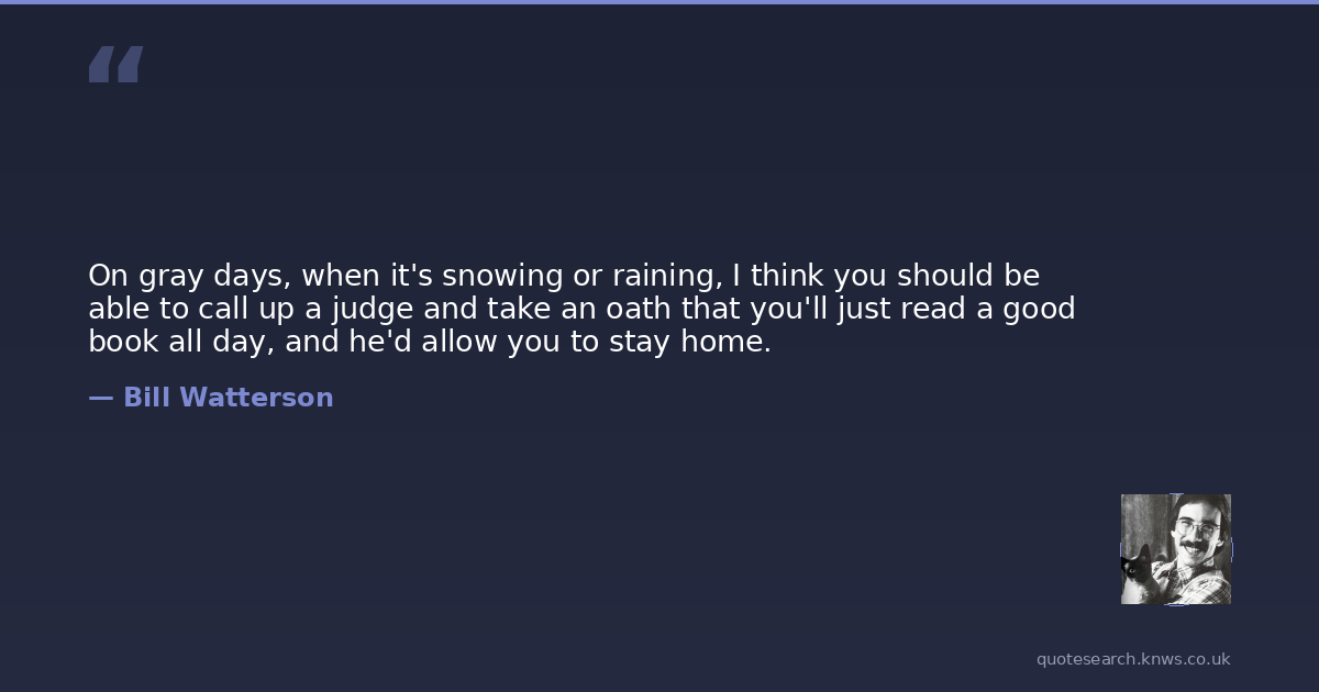 On gray days, when it's snowing or raining, I think you should be able to call up a judge and take an oath that you'll just read a good book all day, and he'd allow you to stay home.