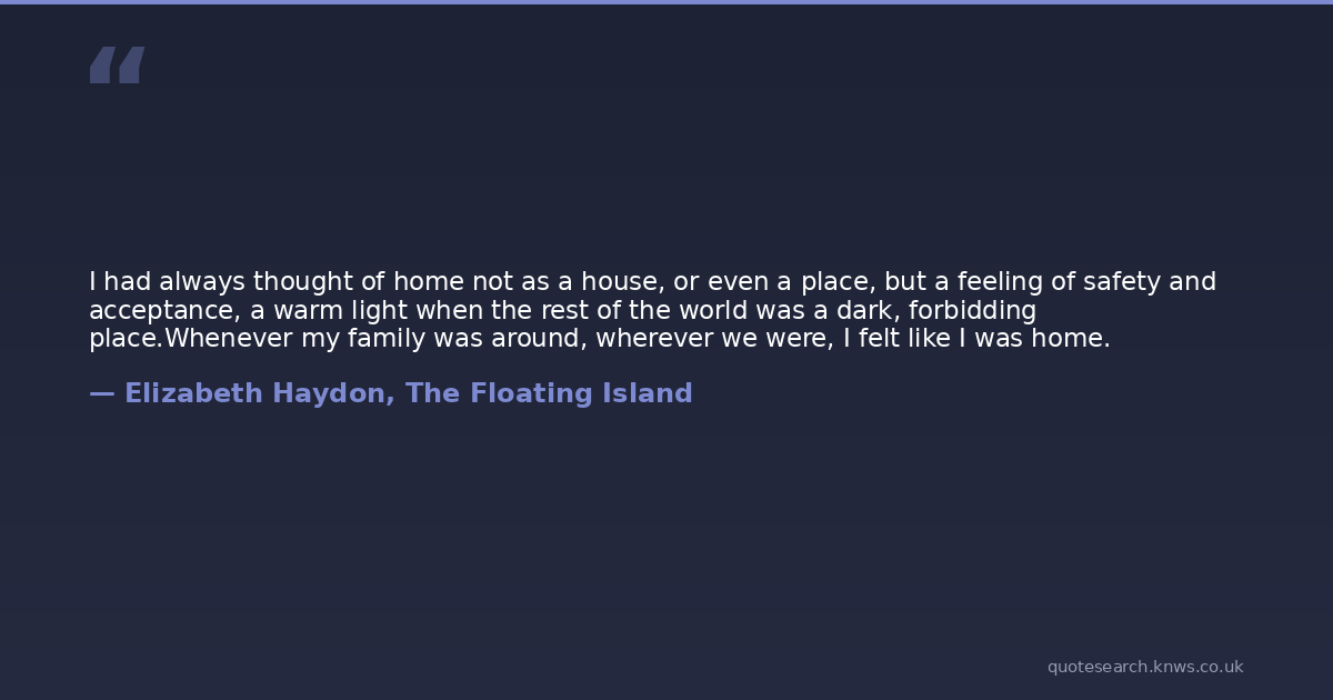 I had always thought of home not as a house, or even a place, but a feeling of safety and acceptance, a warm light when the rest of the world was a dark, forbidding place.Whenever my family was around, wherever we were, I felt like I was home.