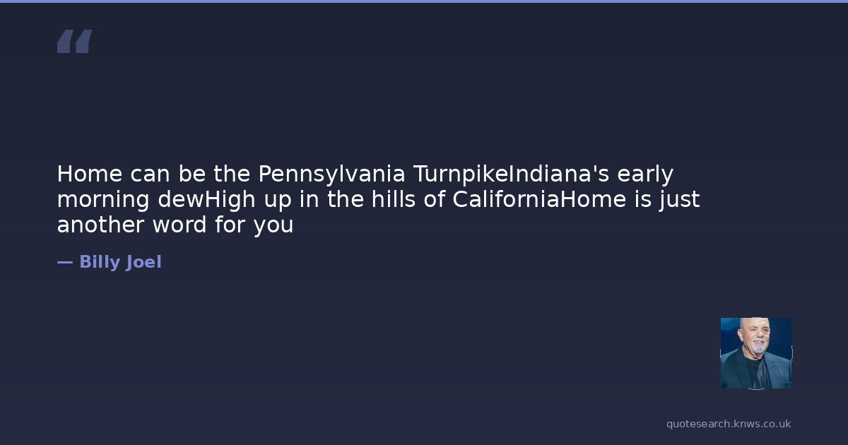 Home can be the Pennsylvania TurnpikeIndiana's early morning dewHigh up in the hills of CaliforniaHome is just another word for you