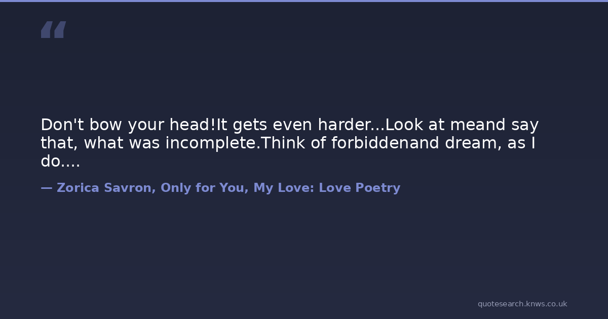 Don't bow your head!It gets even harder...Look at meand say that, what was incomplete.Think of forbiddenand dream, as I do....