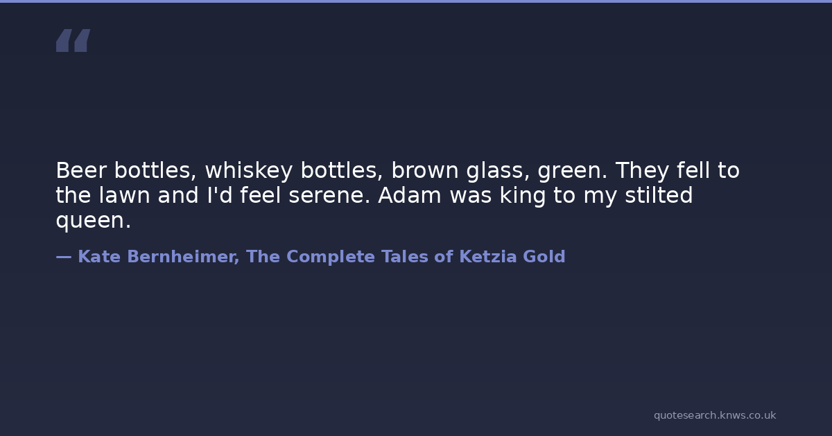 Beer bottles, whiskey bottles, brown glass, green. They fell to the lawn and I'd feel serene. Adam was king to my stilted queen.