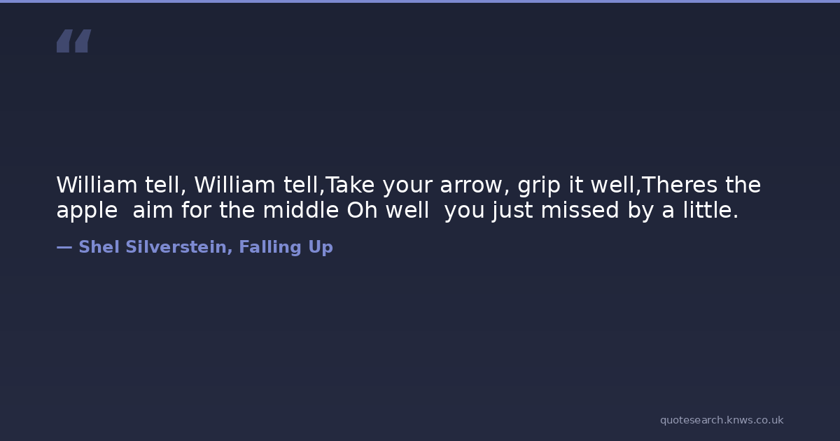 William tell, William tell,Take your arrow, grip it well,Theres the apple aim for the middle Oh well you just missed by a little.