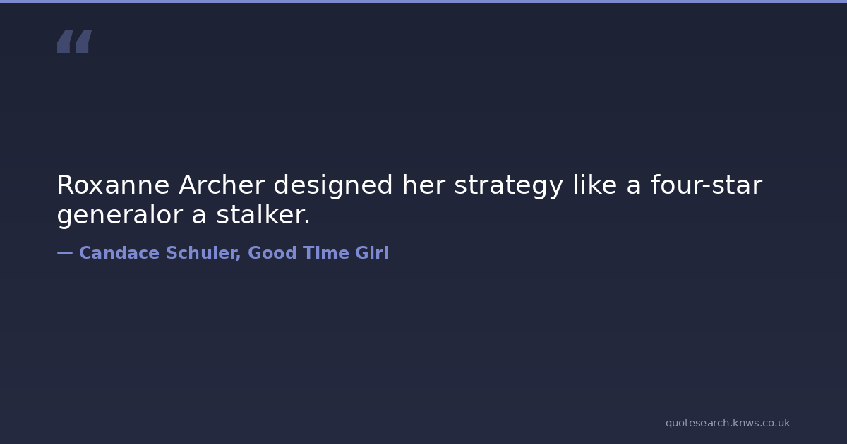 Roxanne Archer designed her strategy like a four-star generalor a stalker. romance Download Image Share on X Share on Facebook Copy Link