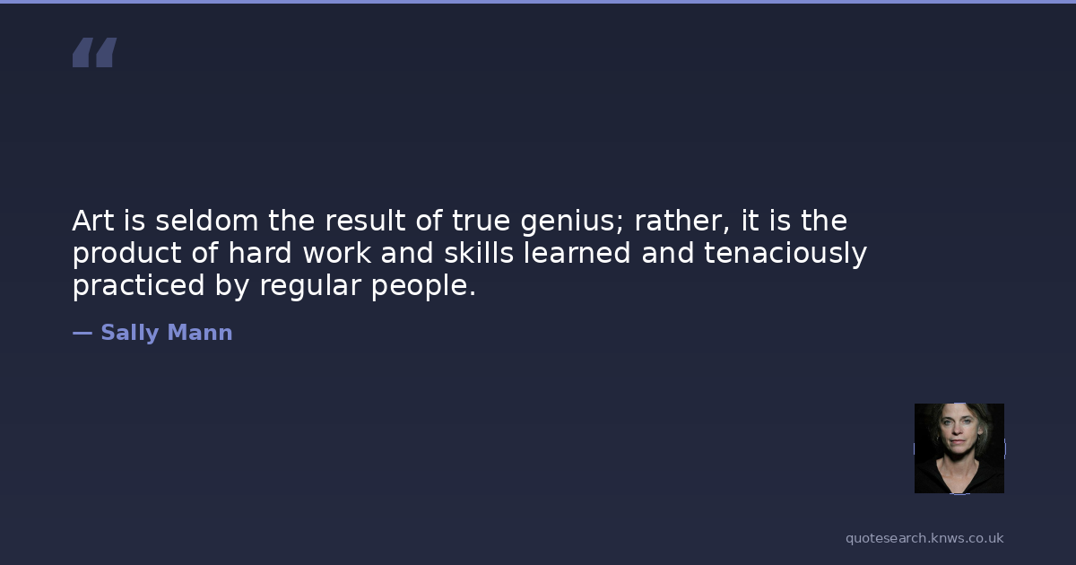 Art is seldom the result of true genius; rather, it is the product of hard work and skills learned and tenaciously practiced by regular people.