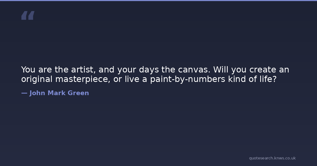 You are the artist, and your days the canvas. Will you create an original masterpiece, or live a paint-by-numbers kind of life?