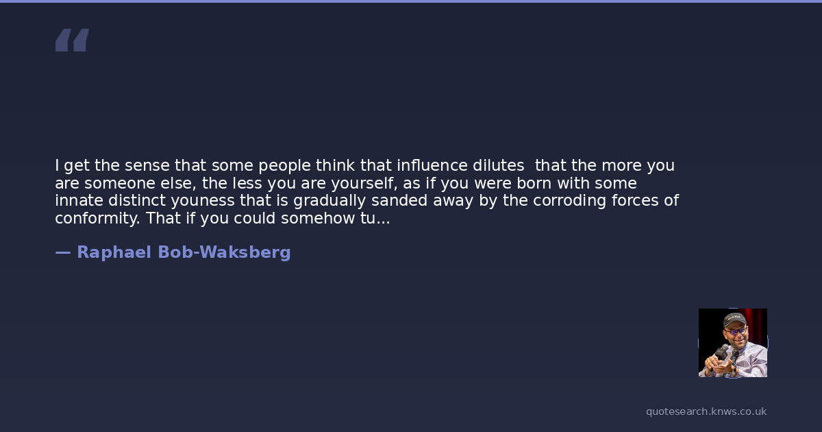 I get the sense that some people think that influence dilutes that the more you are someone else, the less you are yourself, as if you were born with some innate distinct youness that is gradually sanded away by the corroding forces of conformity. That if you could somehow tune everything else out and really dig deep within yourself, youd find your voice there, pure and independent.Thats bullshit. Your voice isnt there, already made. You need to make your own voice. You need to make your own voice.