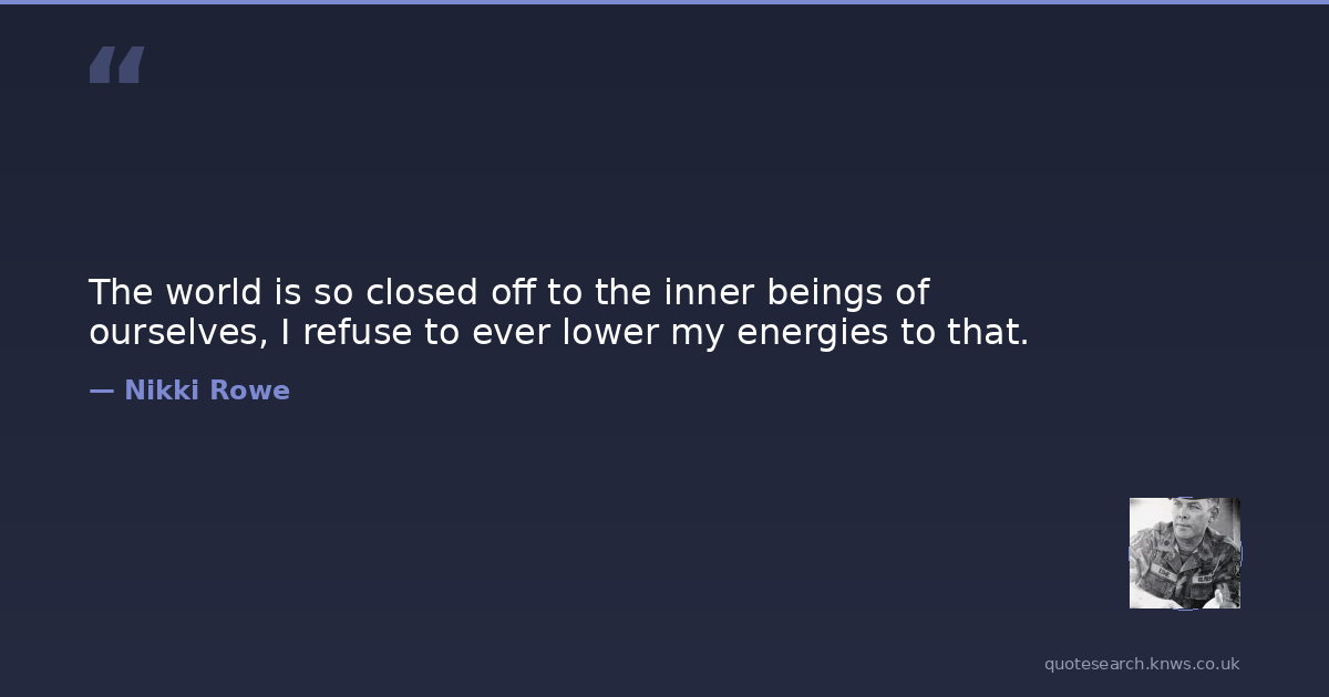 The world is so closed off to the inner beings of ourselves, I refuse to ever lower my energies to that.
