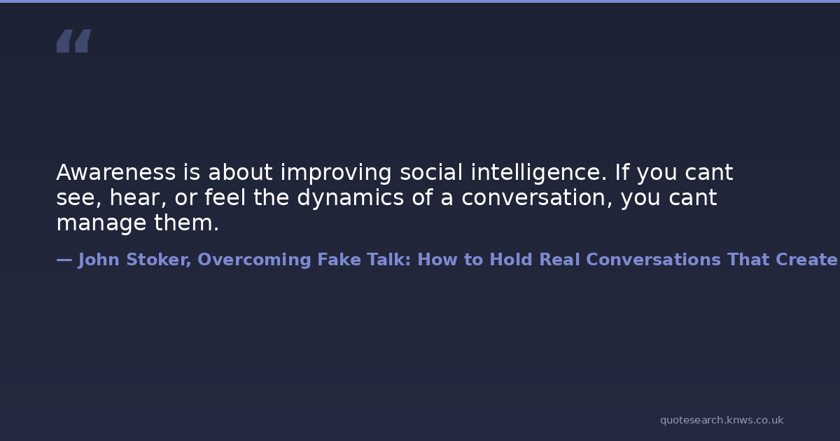Awareness is about improving social intelligence. If you cant see, hear, or feel the dynamics of a conversation, you cant manage them.