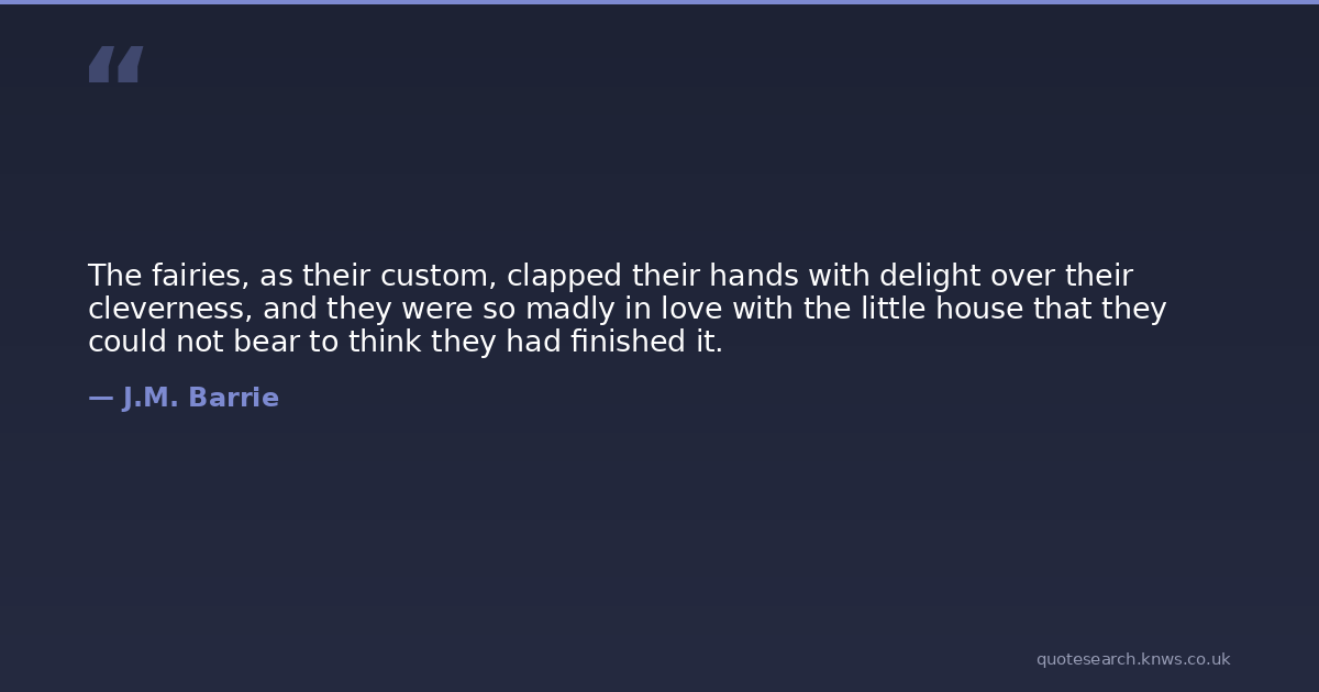 The fairies, as their custom, clapped their hands with delight over their cleverness, and they were so madly in love with the little house that they could not bear to think they had finished it.