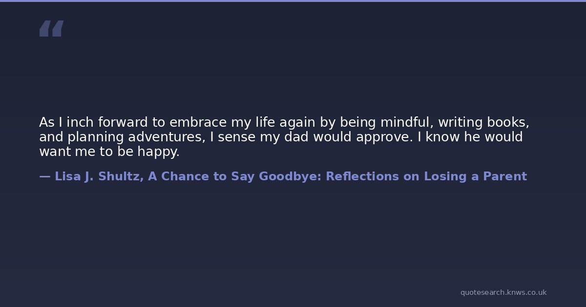 As I inch forward to embrace my life again by being mindful, writing books, and planning adventures, I sense my dad would approve. I know he would want me to be happy.