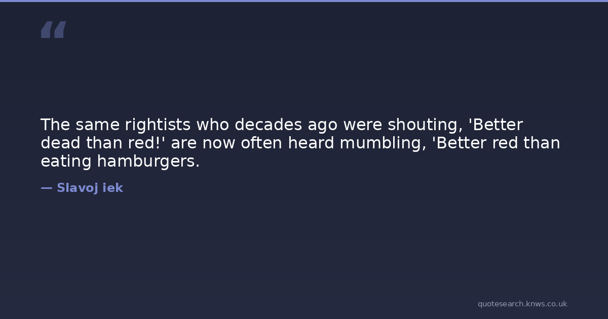 The same rightists who decades ago were shouting, 'Better dead than red!' are now often heard mumbling, 'Better red than eating hamburgers.
