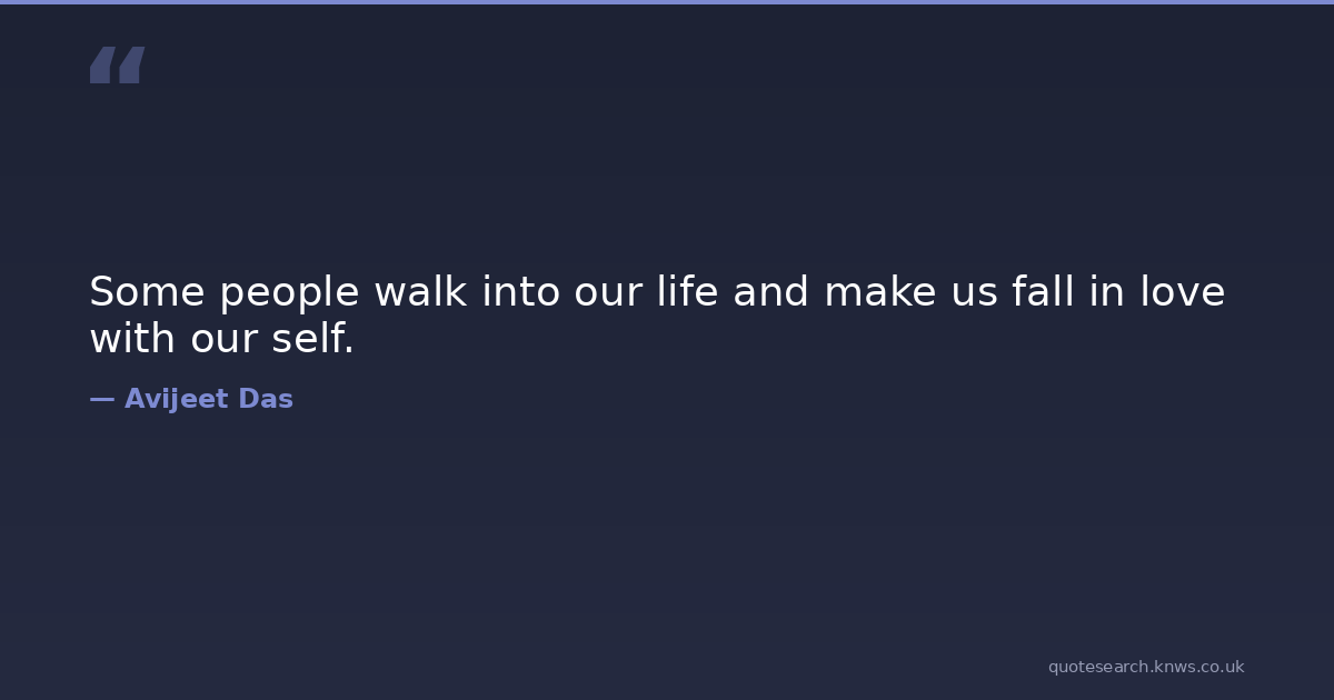 Some people walk into our life and make us fall in love with our self. fall-in-love-quotes life-quotes love-quotes passion-quotes poetry-quotes walk-quotes Download Image Share on X Share on Facebook Copy Link