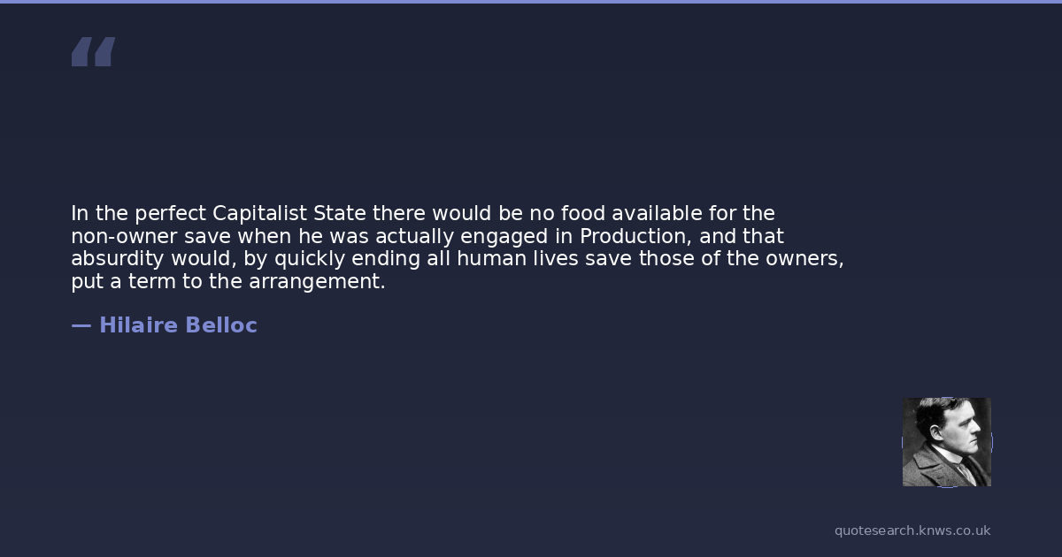 In the perfect Capitalist State there would be no food available for the non-owner save when he was actually engaged in Production, and that absurdity would, by quickly ending all human lives save those of the owners, put a term to the arrangement.