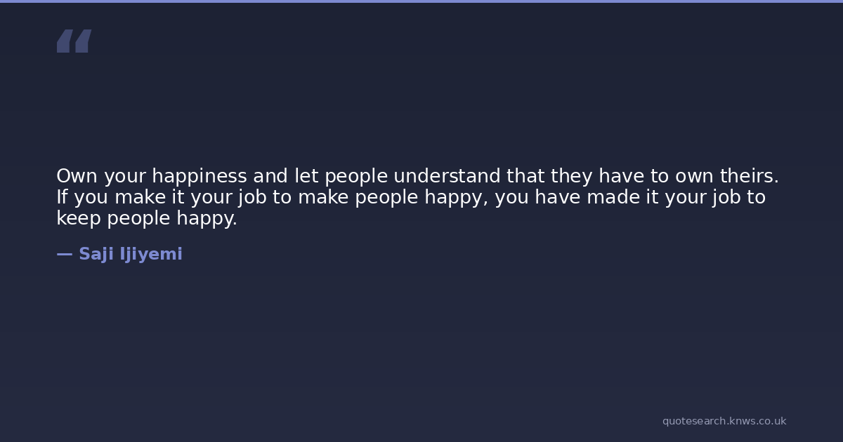 Own your happiness and let people understand that they have to own theirs. If you make it your job to make people happy, you have made it your job to keep people happy.