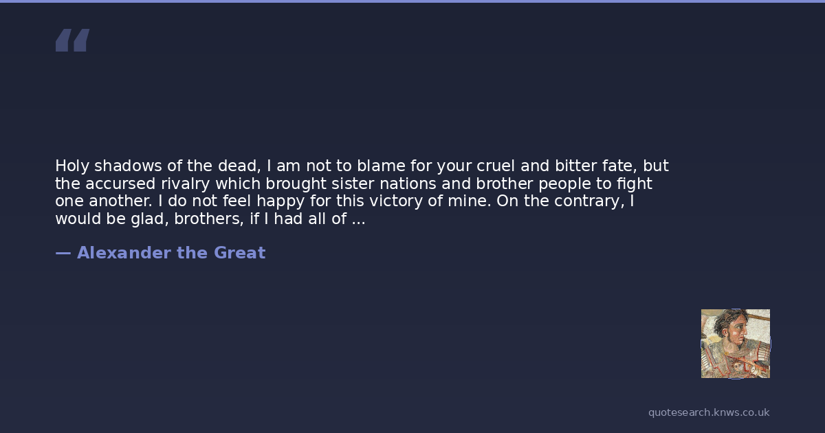 Holy shadows of the dead, I am not to blame for your cruel and bitter fate, but the accursed rivalry which brought sister nations and brother people to fight one another. I do not feel happy for this victory of mine. On the contrary, I would be glad, brothers, if I had all of you standing here next to me, since we are united by the same language, the same blood and the same vi