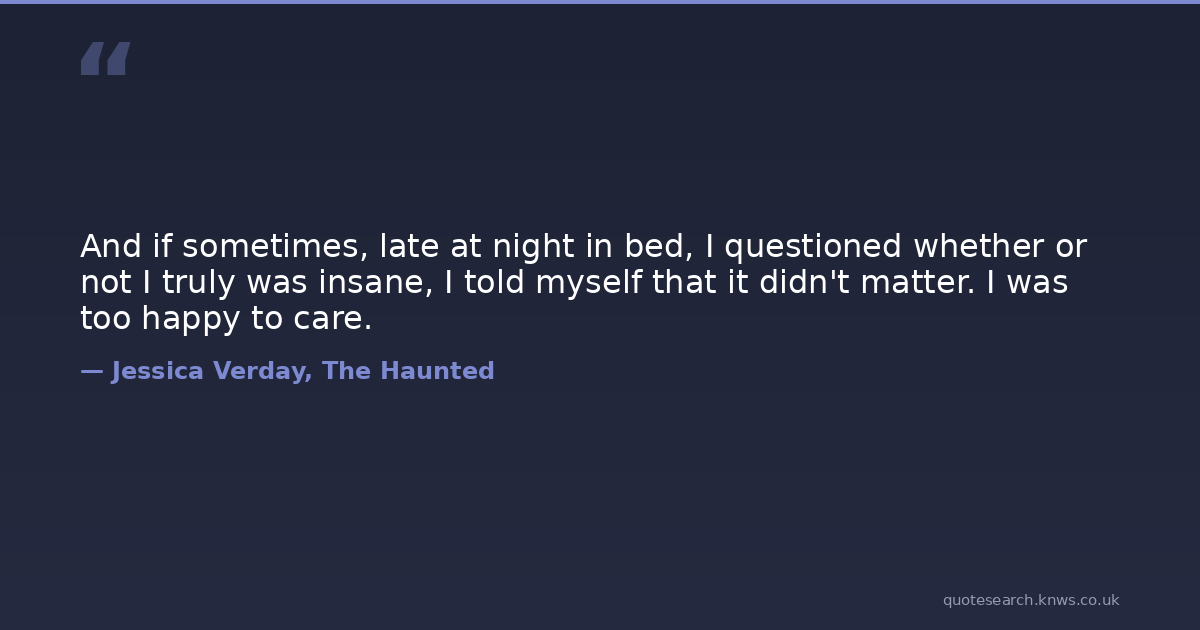 And if sometimes, late at night in bed, I questioned whether or not I truly was insane, I told myself that it didn't matter. I was too happy to care.