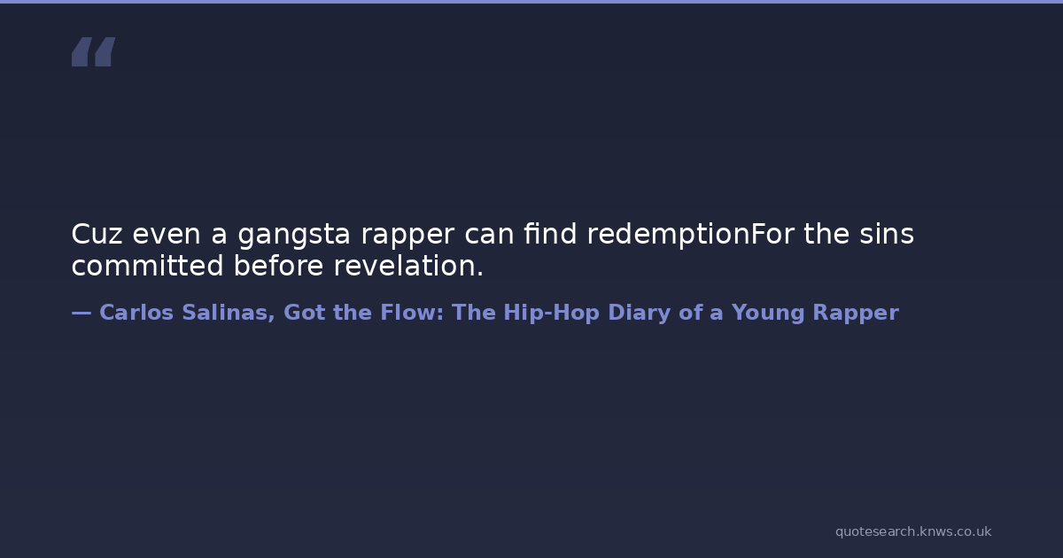 Cuz even a gangsta rapper can find redemptionFor the sins committed before revelation.