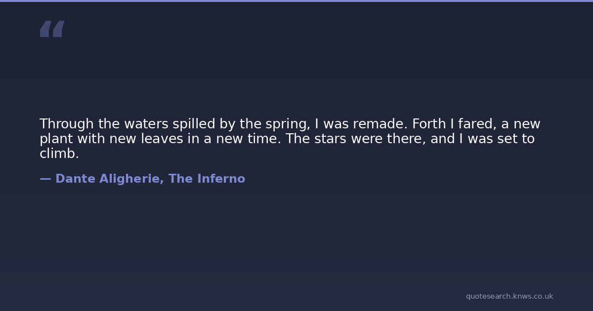 Through the waters spilled by the spring, I was remade. Forth I fared, a new plant with new leaves in a new time. The stars were there, and I was set to climb.