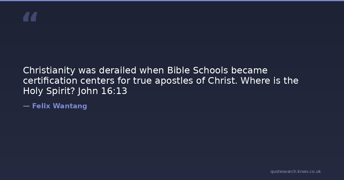 Christianity was derailed when Bible Schools became certification centers for true apostles of Christ. Where is the Holy Spirit? John 16:13