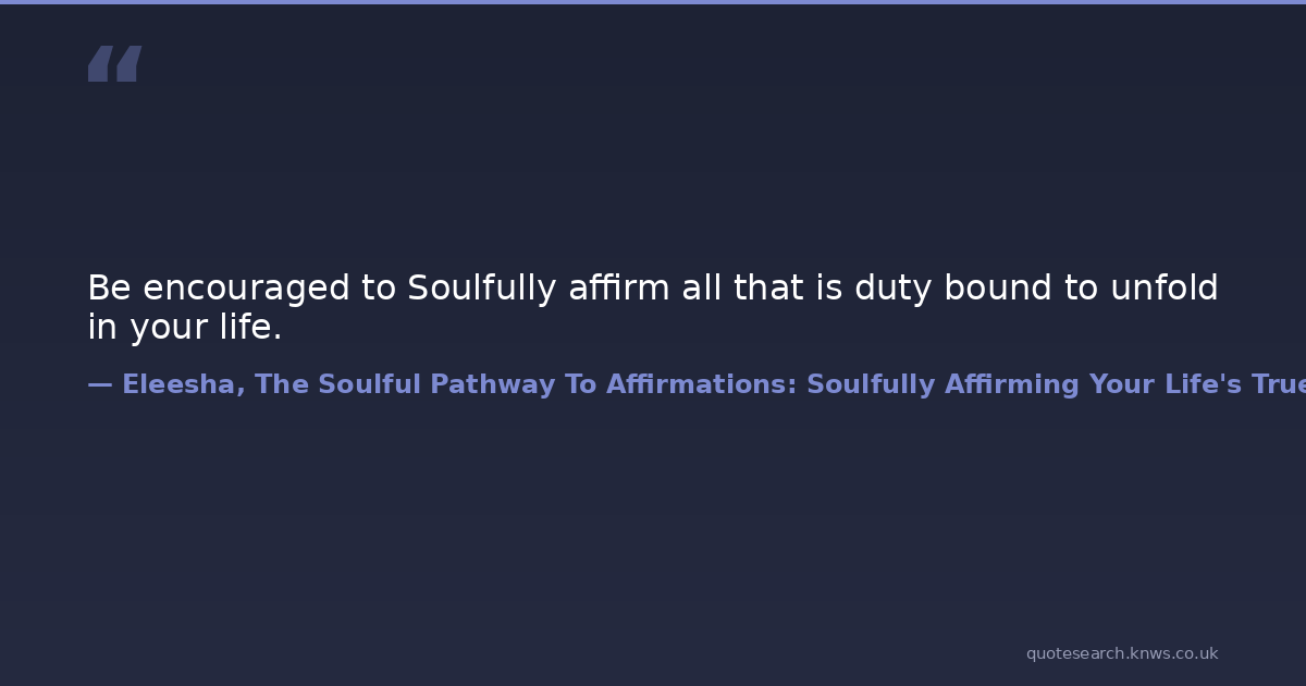 Be encouraged to Soulfully affirm all that is duty bound to unfold in your life.