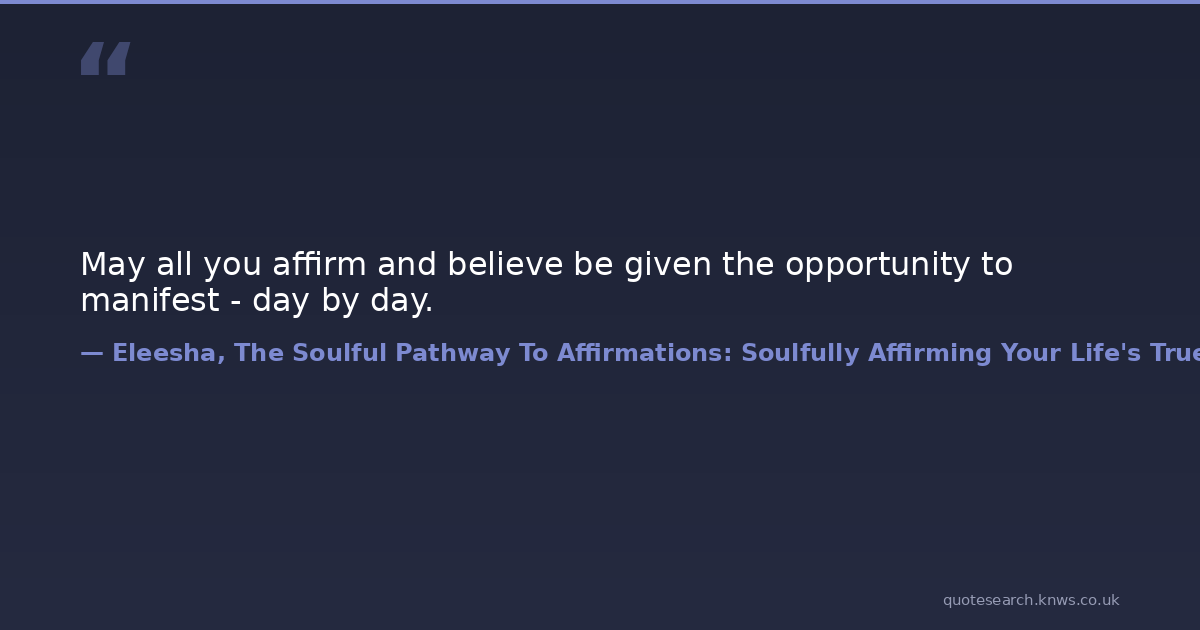 May all you affirm and believe be given the opportunity to manifest - day by day.