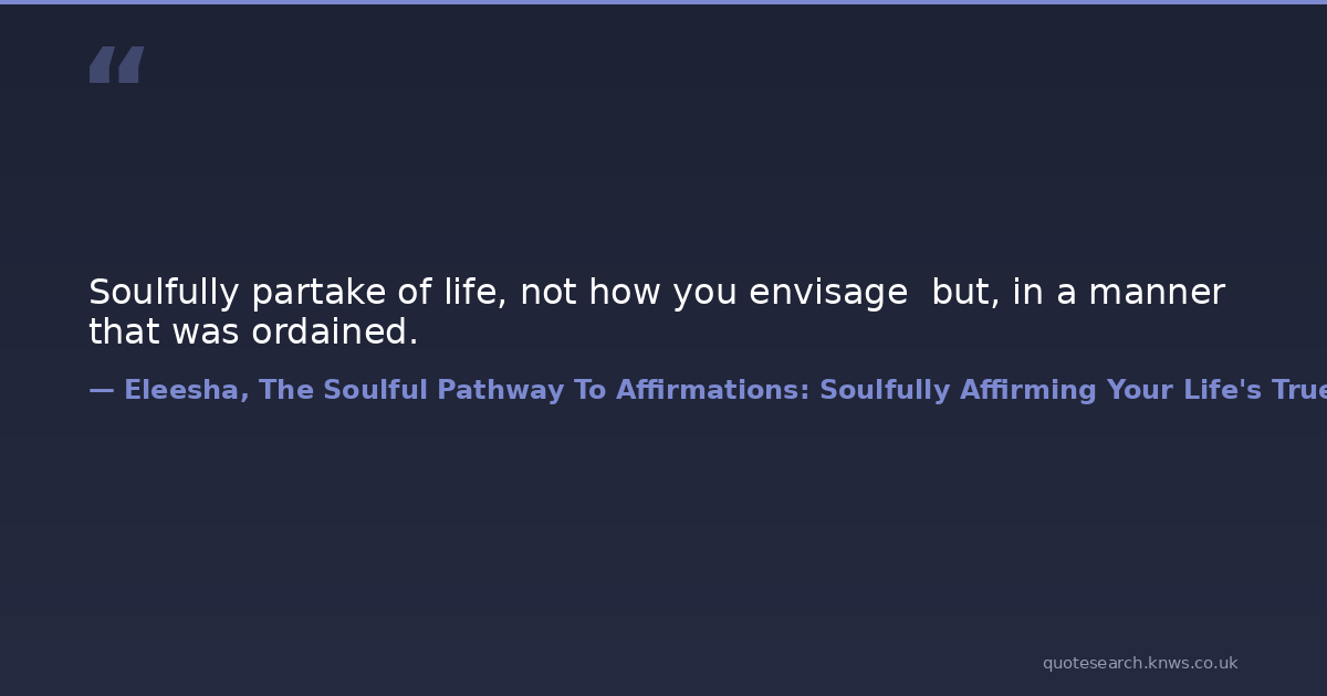 Soulfully partake of life, not how you envisage but, in a manner that was ordained.
