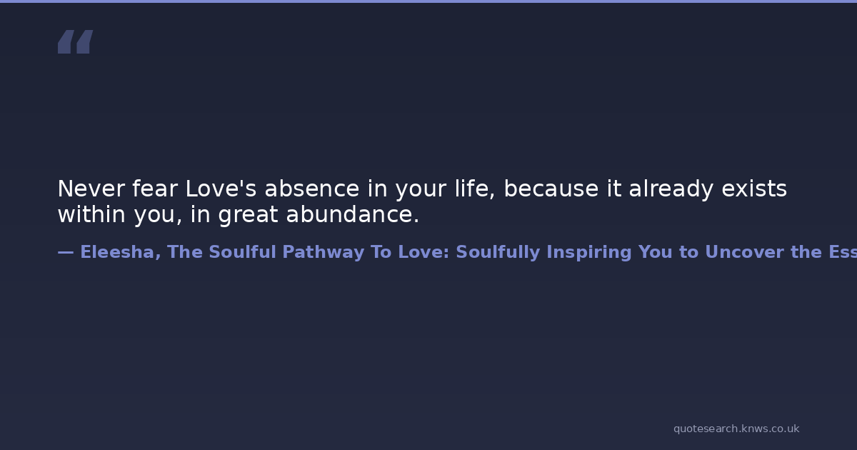 Never fear Love's absence in your life, because it already exists within you, in great abundance.