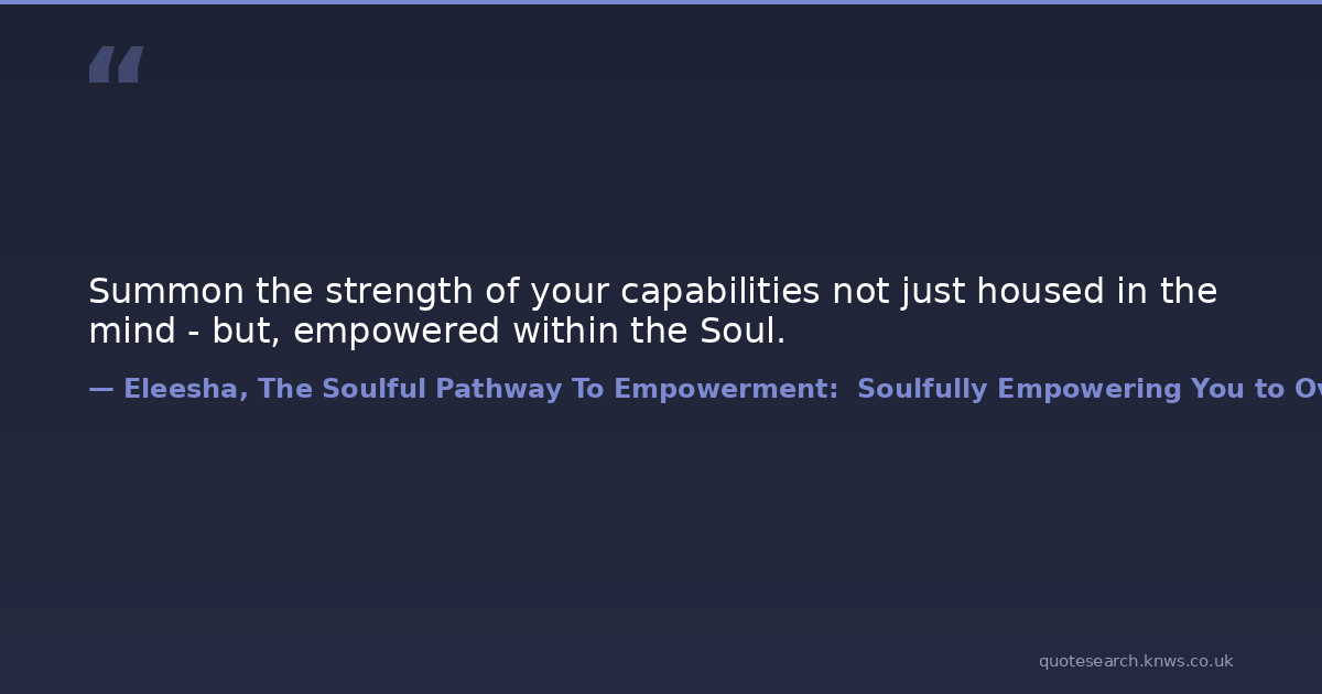 Summon the strength of your capabilities not just housed in the mind - but, empowered within the Soul.