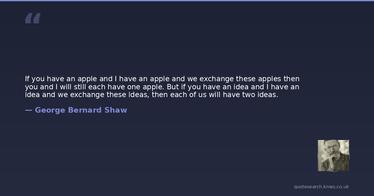 If you have an apple and I have an apple and we exchange these apples then you and I will still each have one apple. But if you have an idea and I have an idea and we exchange these ideas, then each of us will have two ideas.
