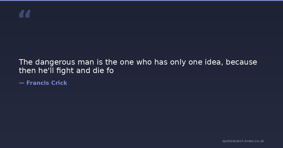 The dangerous man is the one who has only one idea, because then he'll fight and die fo ideas zealotry Download Image Share on X Share on Facebook Copy Link