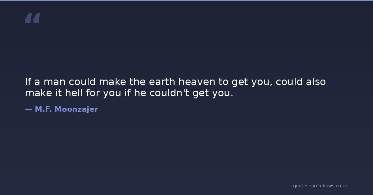 If a man could make the earth heaven to get you, could also make it hell for you if he couldn't get you.