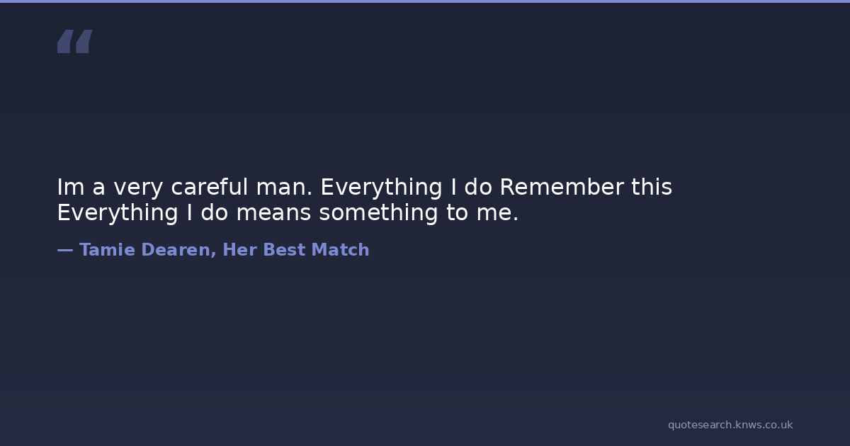 Im a very careful man. Everything I do Remember this Everything I do means something to me.