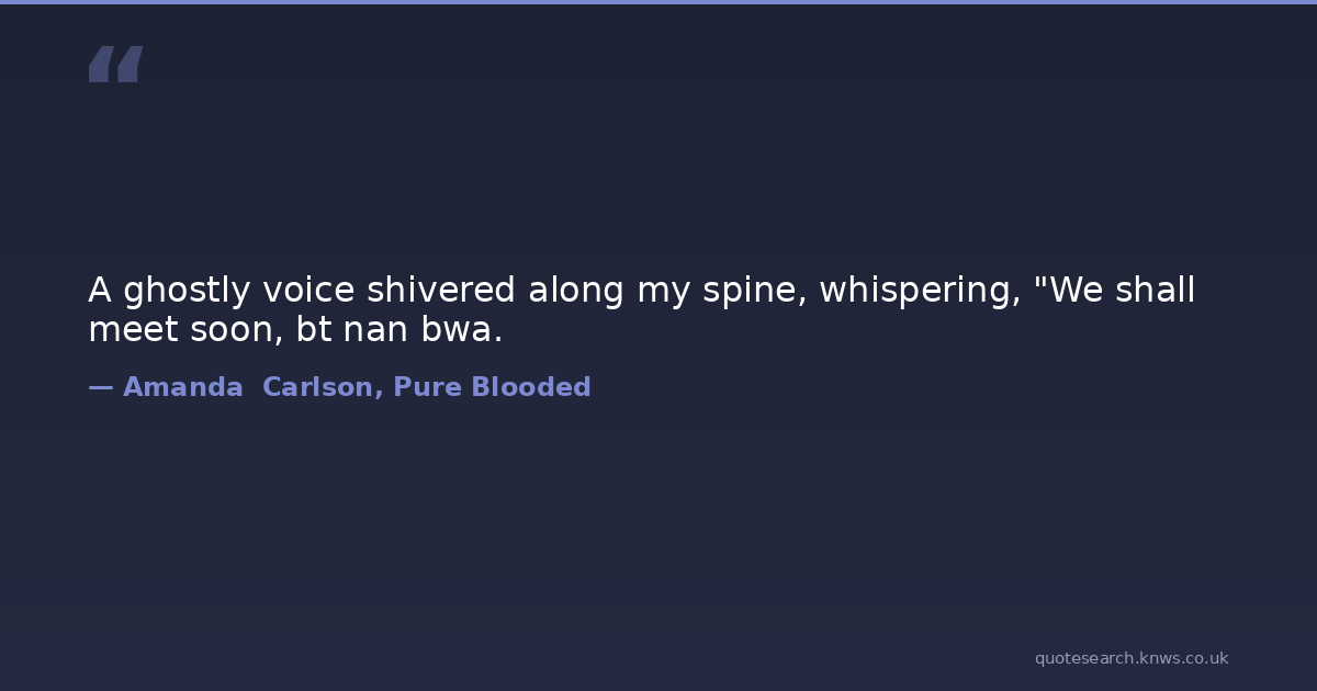 A ghostly voice shivered along my spine, whispering, "We shall meet soon, bt nan bwa.