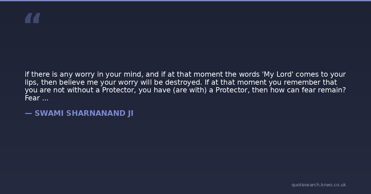 if there is any worry in your mind, and if at that moment the words 'My Lord' comes to your lips, then believe me your worry will be destroyed. If at that moment you remember that you are not without a Protector, you have (are with) a Protector, then how can fear remain? Fear comes only in the lives of those who are without any Protector.