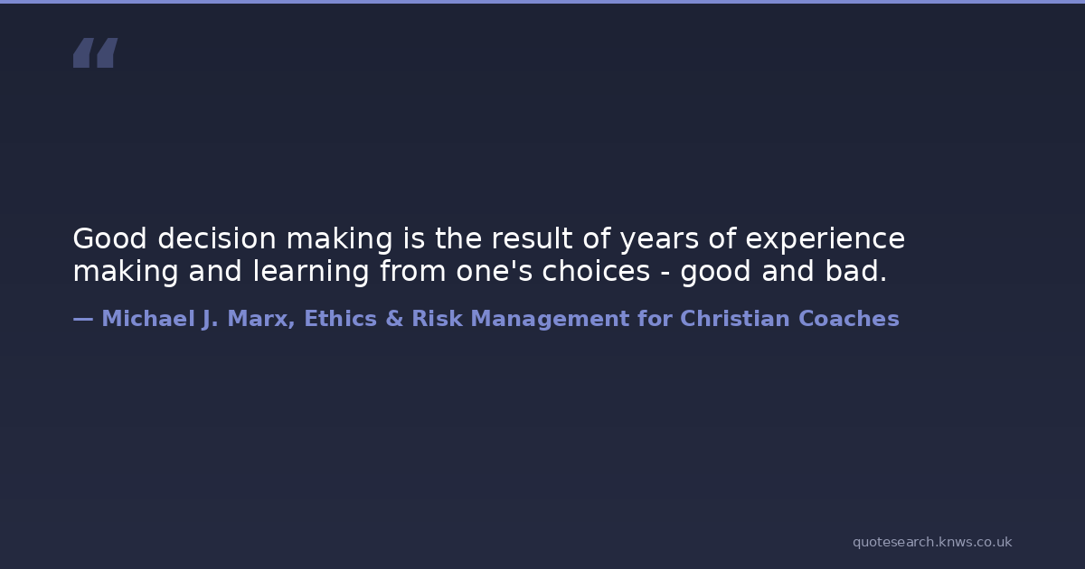 Good decision making is the result of years of experience making and learning from one's choices - good and bad.