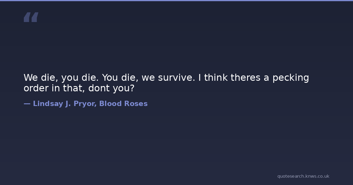 We die, you die. You die, we survive. I think theres a pecking order in that, dont you?