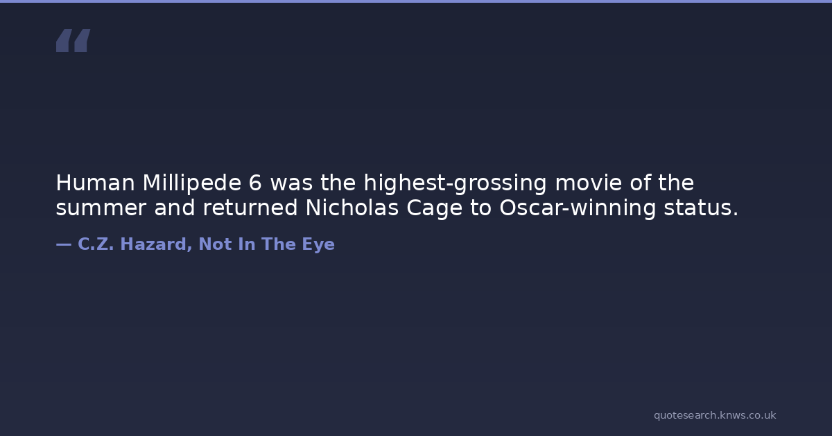 Human Millipede 6 was the highest-grossing movie of the summer and returned Nicholas Cage to Oscar-winning status. adulthood comedy humour movies nicholas-cage oscars pop-culture porn-industry satire transgressive-fiction Download Image Share on X Share on Facebook Copy Link