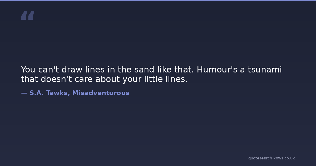 You can't draw lines in the sand like that. Humour's a tsunami that doesn't care about your little lines.