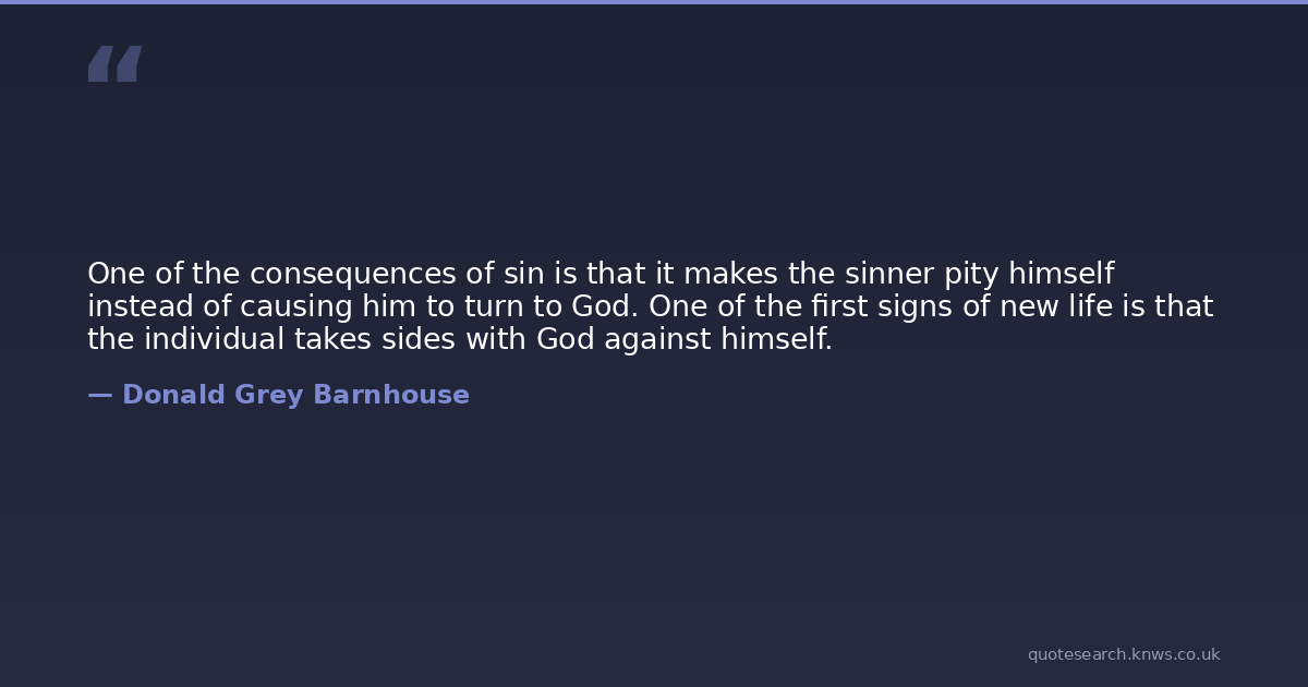 One of the consequences of sin is that it makes the sinner pity himself instead of causing him to turn to God. One of the first signs of new life is that the individual takes sides with God against himself.