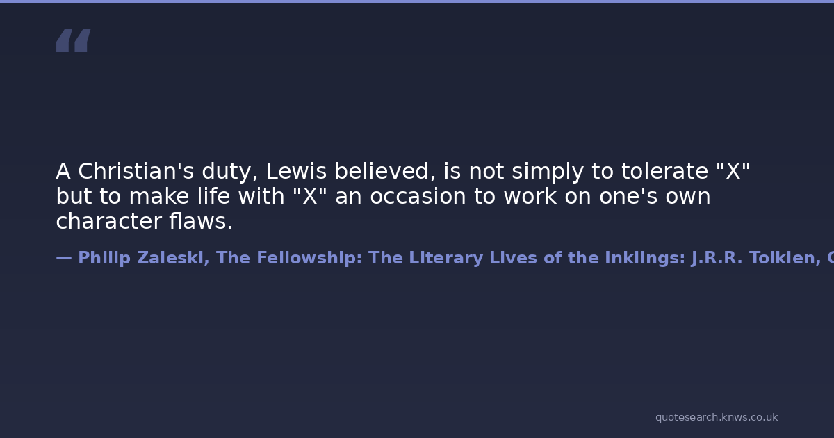 A Christian's duty, Lewis believed, is not simply to tolerate "X" but to make life with "X" an occasion to work on one's own character flaws.