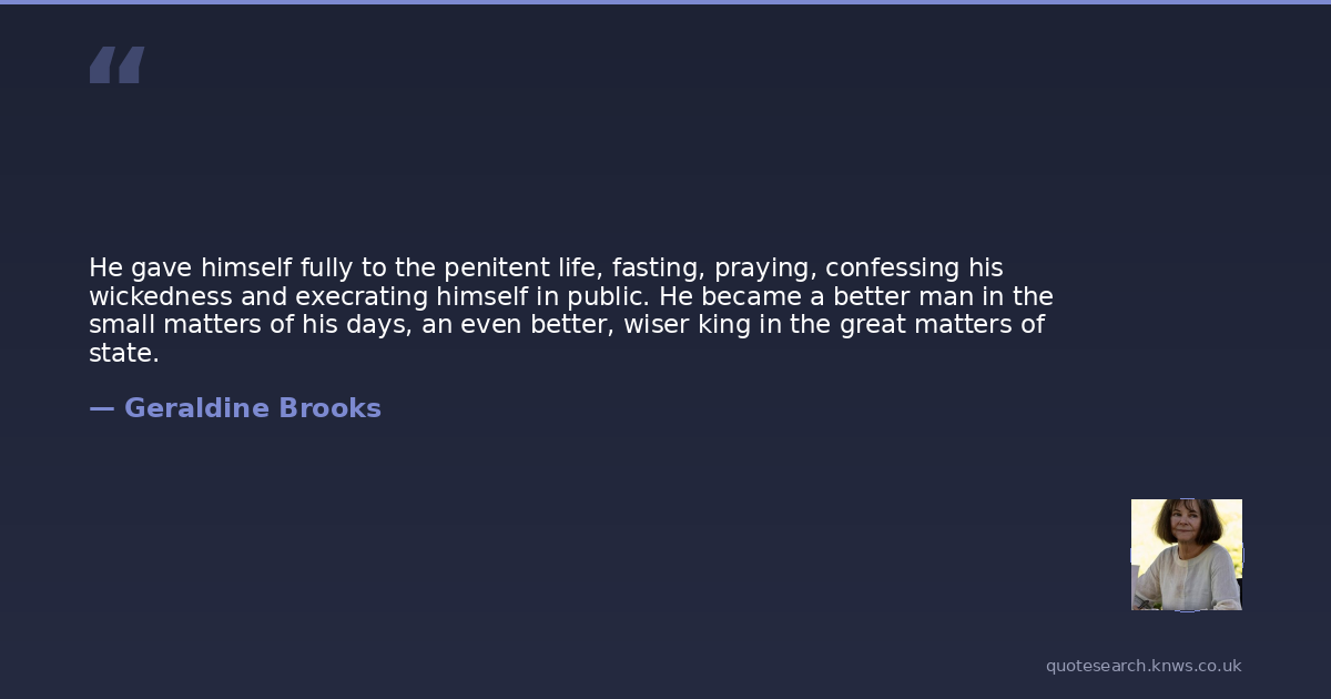He gave himself fully to the penitent life, fasting, praying, confessing his wickedness and execrating himself in public. He became a better man in the small matters of his days, an even better, wiser king in the great matters of state.