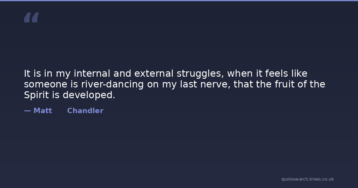 It is in my internal and external struggles, when it feels like someone is river-dancing on my last nerve, that the fruit of the Spirit is developed.