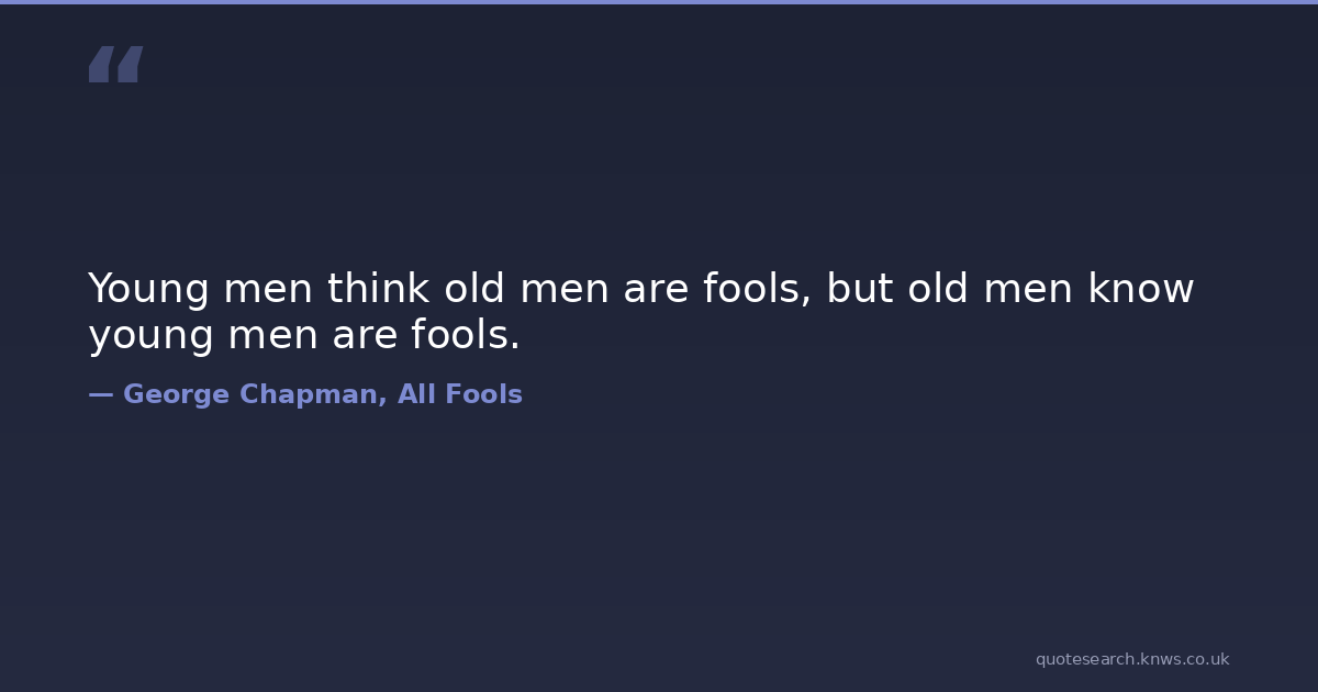 Young men think old men are fools, but old men know young men are fools. age fools youth Download Image Share on X Share on Facebook Copy Link