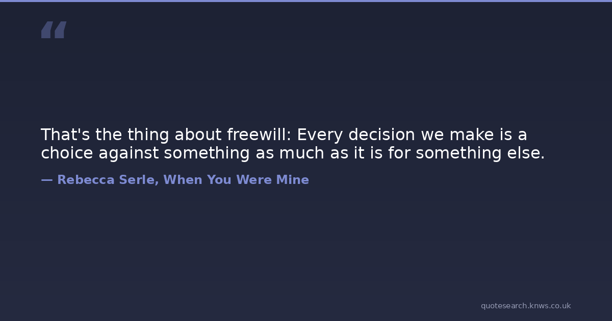 That's the thing about freewill: Every decision we make is a choice against something as much as it is for something else.