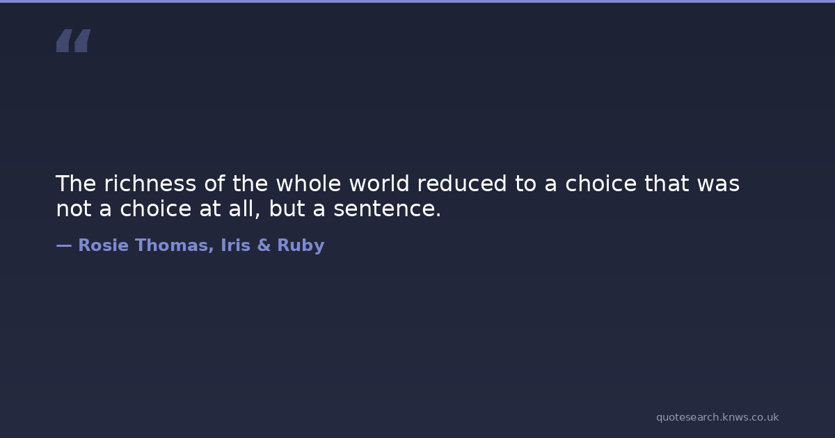 The richness of the whole world reduced to a choice that was not a choice at all, but a sentence.