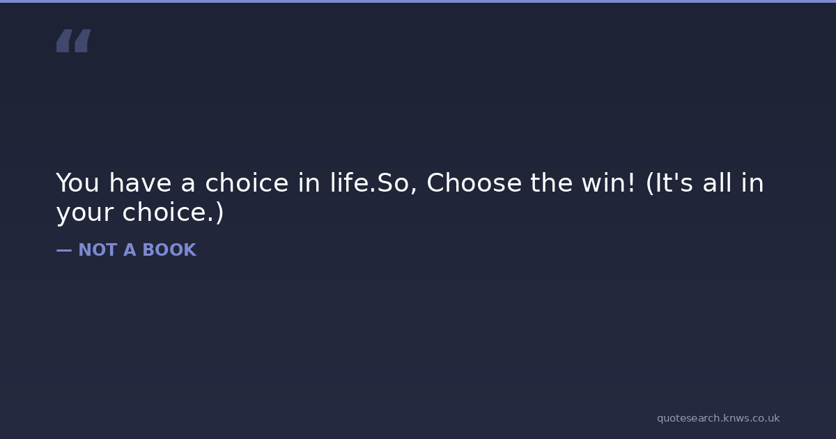 You have a choice in life.So, Choose the win! (It's all in your choice.) choice life win Download Image Share on X Share on Facebook Copy Link