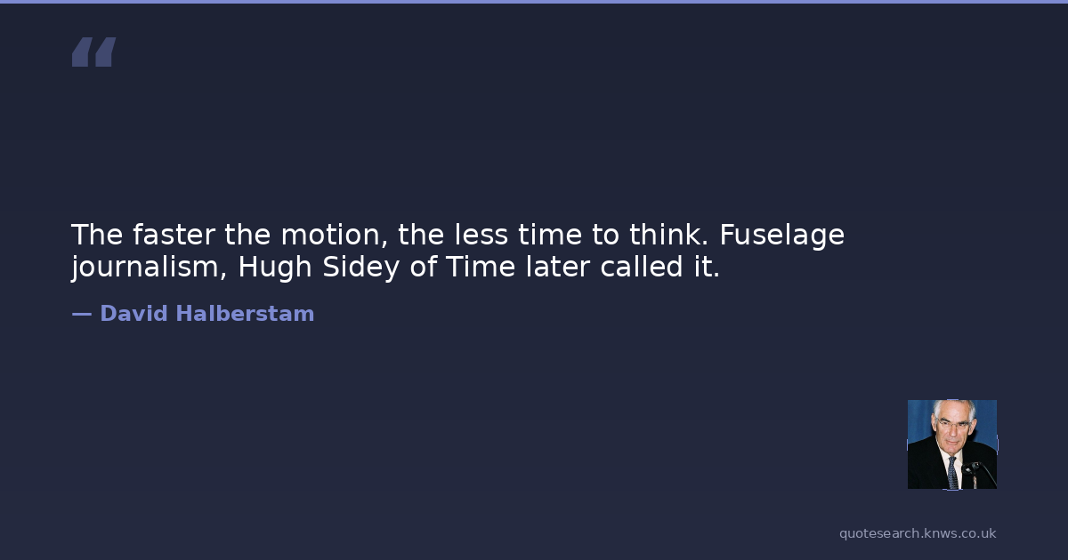 The faster the motion, the less time to think. Fuselage journalism, Hugh Sidey of Time later called it.