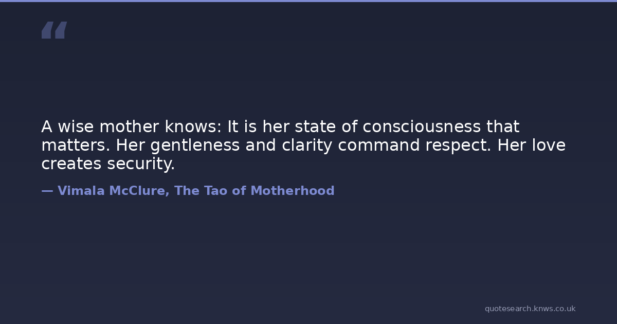 A wise mother knows: It is her state of consciousness that matters. Her gentleness and clarity command respect. Her love creates security.