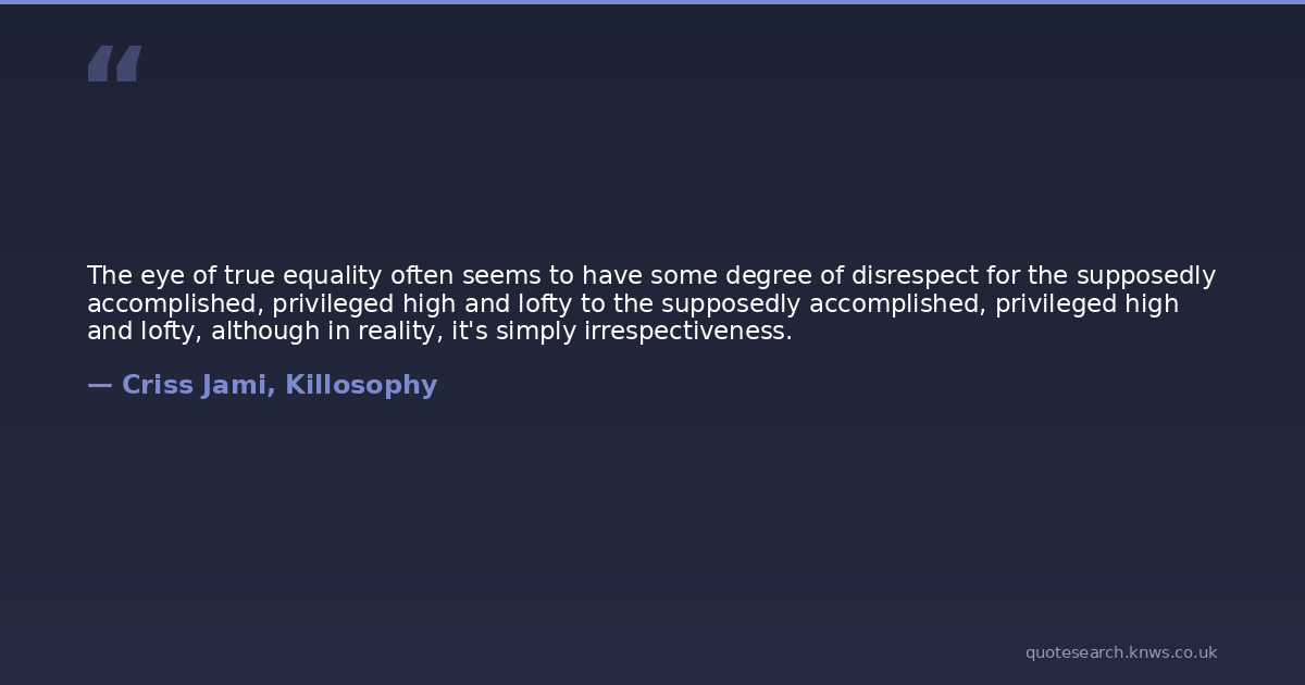 The eye of true equality often seems to have some degree of disrespect for the supposedly accomplished, privileged high and lofty to the supposedly accomplished, privileged high and lofty, although in reality, it's simply irrespectiveness.